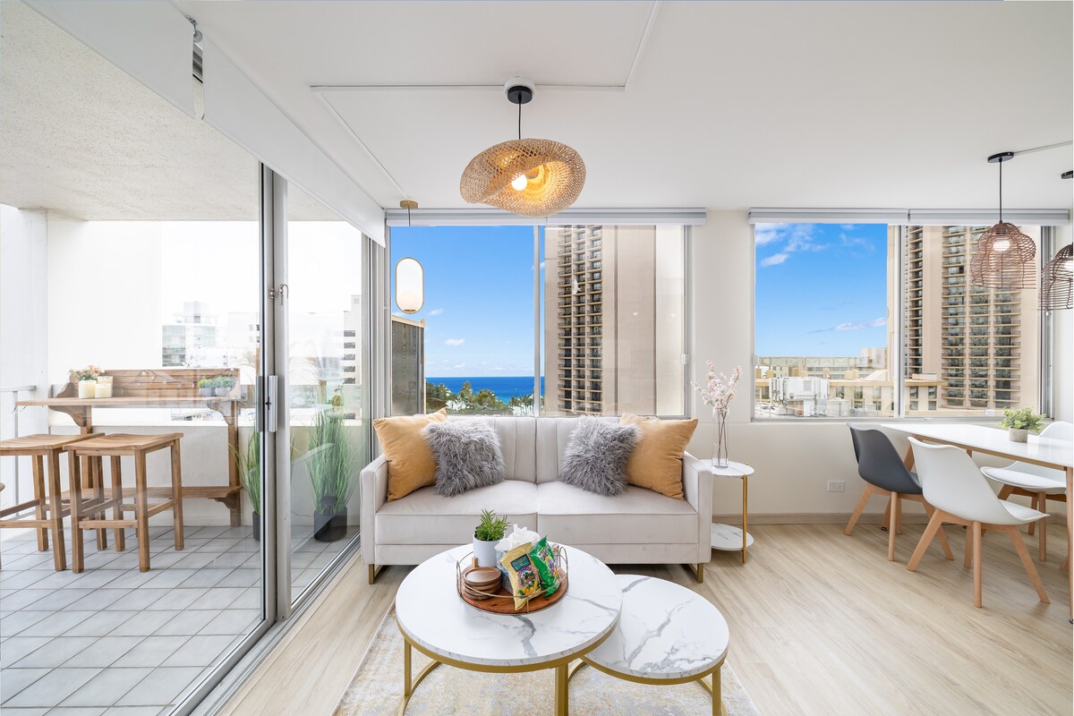Raskite savo rojų šiame 1 miegamojo apartamentuose pačioje Vaikiki širdyje! Nuostabus vaizdas į vandenyną iš lanų, jaukus miegamasis, erdvi svetainė ir virtuvė su prieiga prie baseino ant stogo, pirties, svetingumo apartamentų ir dar daugiau Šis paslėptas perlas yra už VIENO kvartalo nuo Vaikiki paplūdimio, o viskas pasiekiama pėsčiomis. Puikiai tinka poros atostogoms, nuotoliniam darbui ir šeimos atostogoms Mažiau nei 5 minutės pėsčiomis iki ✔ Tarptautinė turgaus vieta ✔ Marugame Udon ✔ Kona kavos tiekėjai ✔ Maguro Bros ✔ Moku Havajų banglenčių parduotuvė