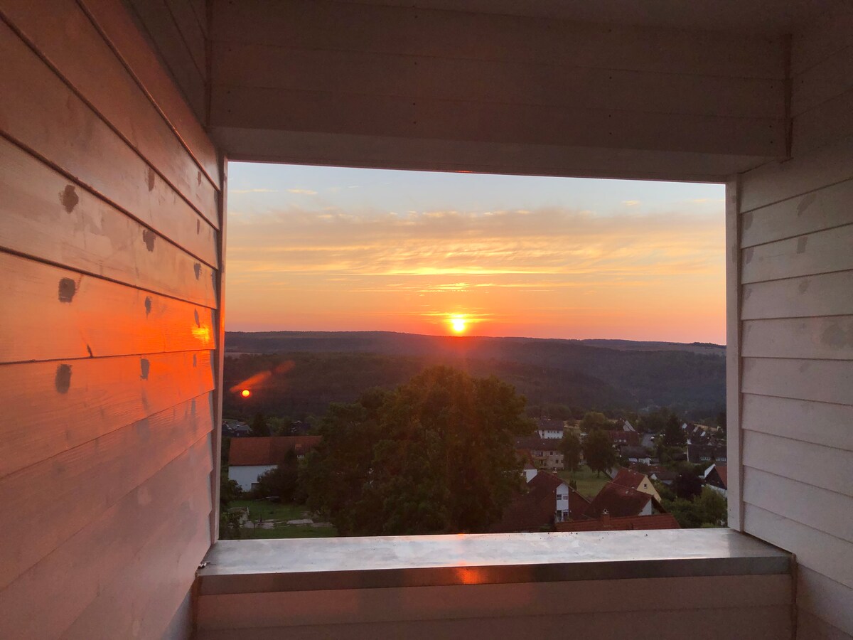 Jūsų laukia unikali vieta ir įspūdingi panoraminiai vaizdai!!! Gyvensite stoginiame studijos tipo bute su dideliu panoraminiu balkonu ir tiesioginiu vaizdu į Edersee ežerą. Prašome internete pasidomėti ežero lygiu, vandens kiekio pokyčiais, net ir vasarą. Ramybė kviečia patirti gryną gamtą. Jūsų studija yra atskira, tik bendri vidiniai laiptai, kuriais dalijamės. Visa vietovė yra puiki vieta žygiams, stebėtis dangumi ir svajoti.