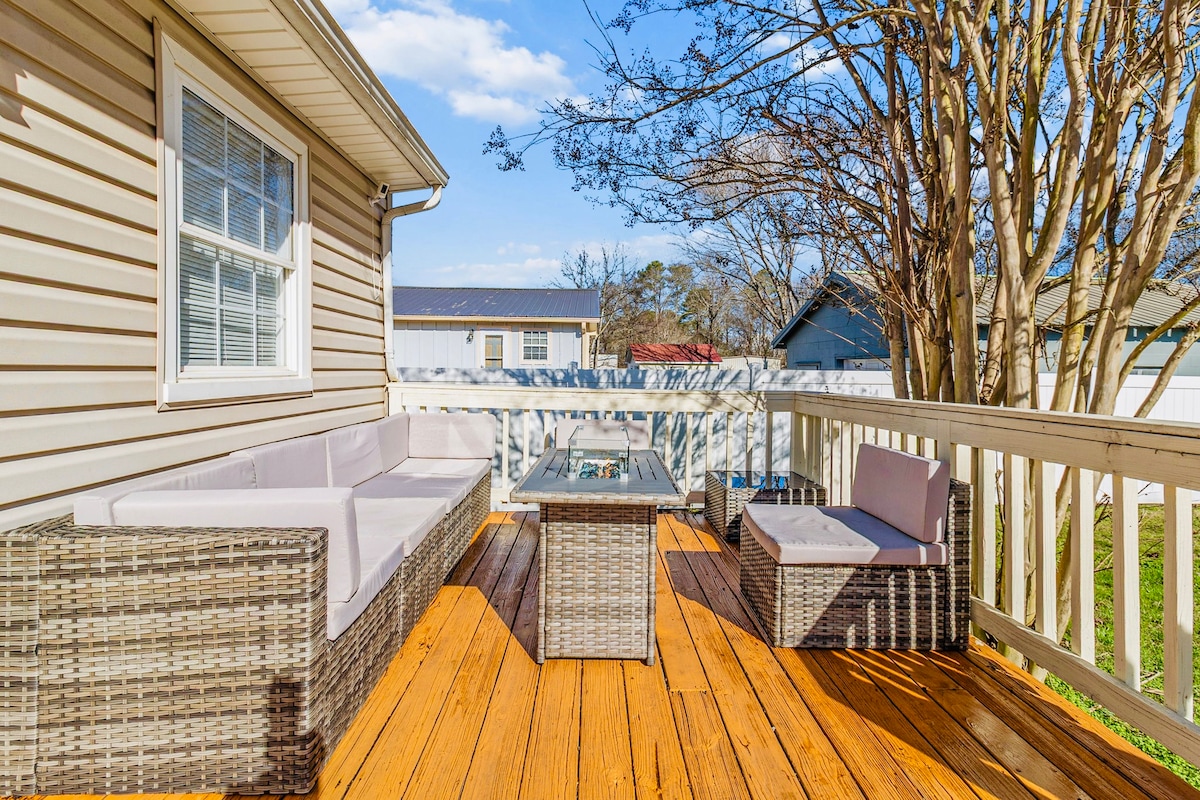 Gražus ir originalus namas, pastatytas 1929 m. Įsikūręs istorinėje pagrindinėje gatvėje. Pilnai įrengta virtuvė su dujine virykle ir indaplove. Greitas internetas ir televizorius dideliame ekrane su pailguoju garsiakalbiu reiškia, kad nėra aukų. Kiekviename miegamajame yra išmanusis televizorius. Didžiulė lauko dengta terasa (su televizoriumi) su daugiaspalviais šviestuvais keliose sėdimose vietose. Dideli kambariai, aukštos lubos ir jaukūs baldai sukuria „Hallmark Channel“ atmosferą. Aukščiausios kokybės baldai ir patogūs baldai sukuria išskirtinį potyrį.