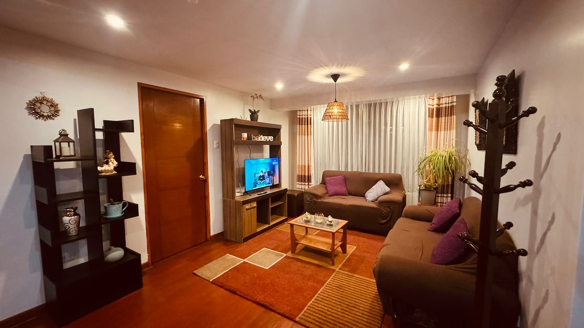 Panoraminis vaizdas į Kusko miestą, turime 3 kambarius, patogiai paskirstytus 6 svečiams, idealiai tinka apsilankyti su šeima ar draugų grupe; esame už 5 minučių kelio automobiliu nuo Imperatoriškojo miesto centro ir 15 minučių pėsčiomis, kelionėje randame archeologinį apskritąjį stalą (Huaca Mama Q 'ana) Pažinkite mūsų miestą „Cusco“ .. likite su mumis !!! ir miegokite namuose!!!
