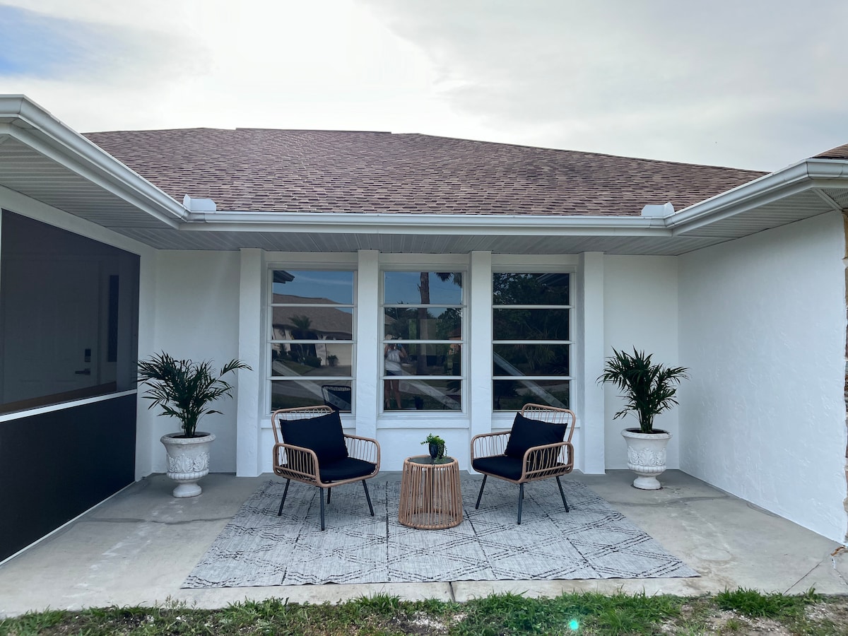 Atsipalaiduokite šiuose moderniuose 3 miegamųjų, 2 vonių namuose North Port. Mėgaukitės privačiu kiemu, jaukiomis gyvenamosiomis erdvėmis ir specialia kavos stotele. Miegokite ramiai karališkoje, karalienės arba pilno dydžio lovoje. Pilnai įrengta virtuvė, skalbyklė ir džiovyklė, išmanieji televizoriai kiekviename kambaryje ir nemokamas belaidis internetas užtikrina kasdienį patogumą. Vakare pasivaikščiokite ramiu rajonu, o tada atraskite netoliese esančius paplūdimius, restoranus ir parkus. Stilinga, patogi ir patogi, ši Floridos poilsio vieta yra ideali vieta pabėgti. Puikiai tinka šeimoms ar poroms!