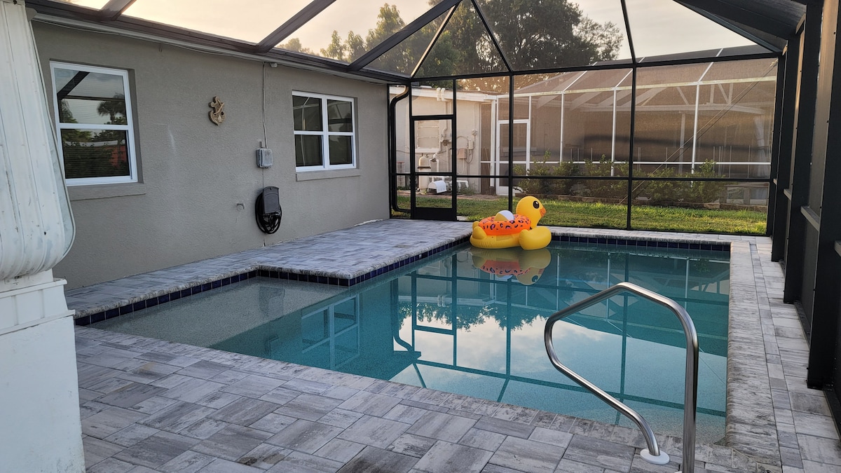 PASLĖPTAS PERLAS Idealiu atveju įsikūręs pačioje Šiaurės uosto širdyje, už mylios nuo Warm Mineral Springs. Liko mažiau nei 25 minutės iki ryklių dantų sostinės, Braves stadiono/Wellen parko, netoli paplūdimių, o šeimos vandens centras yra visai šalia. Jauskitės kaip namie su patogiomis lovomis (užuolaidomis), įrengta virtuve (su kavos baru), dviem vonios kambariais (su rankšluosčiais ir tualeto reikmenimis) ir dideliu Floridos kambariu (biliardo stalu ir stalo žaidimais) su vaizdu į privatų kiemą (kepsninę ir laužavietę).