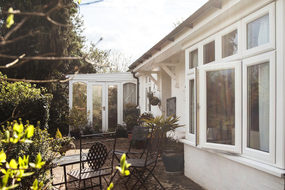 Atsipalaiduokite arba dirbkite šiame stilingame bute su privačiu kiemo sodu ir senoviniu vasarnamiu * NĖRA papildomo tvarkymo mokesčio * Butas pirmame aukšte su nemokama automobilių stovėjimo aikštele * Atskiras įėjimas * Peržiūros į šalis * Wi-Fi * Savarankiškas atvykimas * 6 pėdų super karališko dydžio lova * Šildymas. * Išmanioji televizija * Plius vasarnamis * 1 valandos kelionė traukiniu iš Londono * Vietinis baras / maistas už 10 minučių kelio pėsčiomis * Pasivaikščiojimai po kaimą * Upe 1 mylią galima plaukioti laivu arba pasivaikščioti * Netinka augintiniams ar vaikams * Atkreipkite dėmesį, kad būste NELEIDŽIAMA įkrauti elektromobilio *