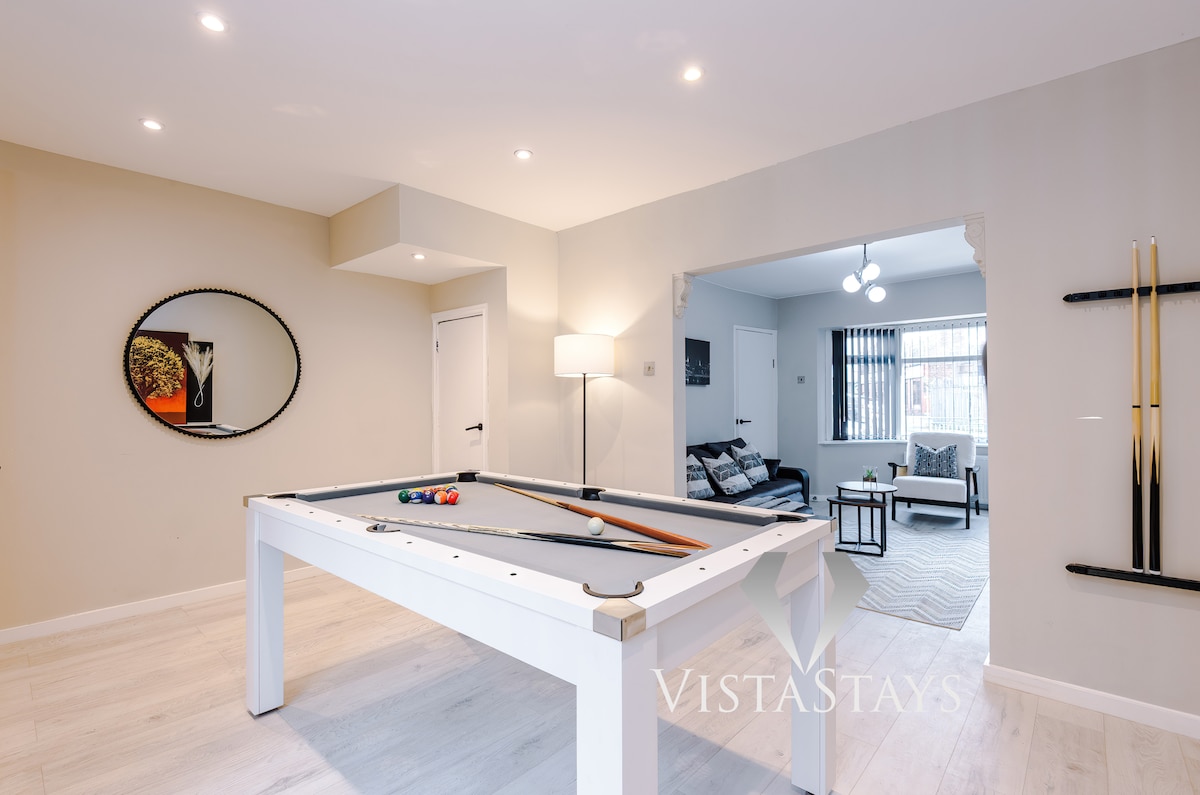 Socialiniai tinklai: „Manchester Hidden Gem“ tiesioginiam užsakymui Luxury Private Retreat – Ultimate WOW Factor! Pasinerkite į šį nuostabų pabėgimą su vartais, kur elegancija susitinka su linksmybėmis. Atsipalaiduokite sūkurinėje vonioje, mėgaukitės filmų vakarais viename iš dviejų stilingų poilsio kambarių arba iššūkį draugams žaidimų kambaryje. Gaminkite ir pramogaukite aptakioje atviro plano virtuvėje, įsikūrusioje gražiai nuošalioje aplinkoje. Penkių žvaigždučių potyris nuo pat atvykimo. Nepaprastai arti Mančesterio oro uosto ir miesto centro.