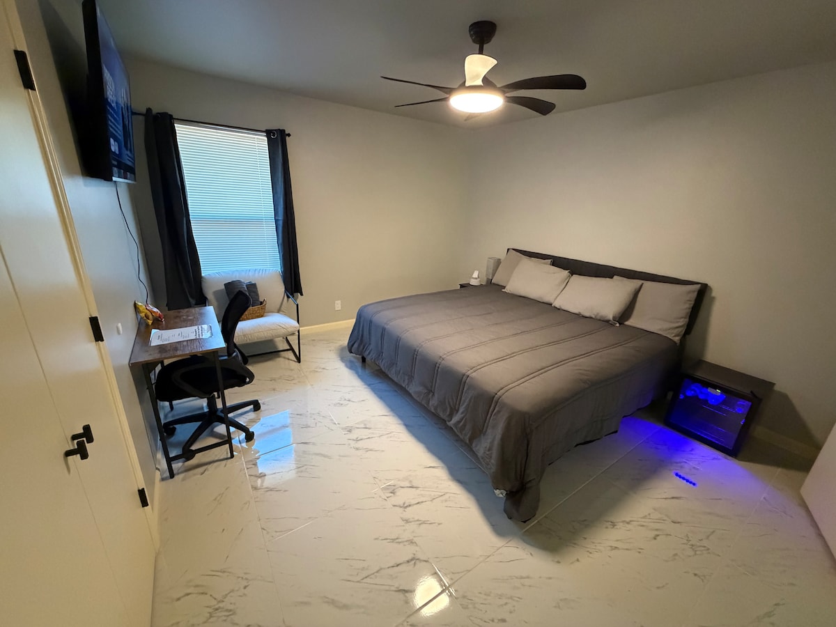 Šis mikronamas yra puiki vieta vienam svečiui su viskuo, ko jam reikia apsistoti nuo kelių dienų iki kelių mėnesių. Jame yra privatus vonios kambarys ir baldai, pvz., patogi lova, stalas ir kėdė darbui, šaldytuvas, mikrobangų krosnelė, televizorius su prieiga prie „Netflix“, „Amazon“ ir „Hulu“. Priešais yra gražus kiemas, kuriame galima atsipalaiduoti lauke arba kepti kepsnius lauke.