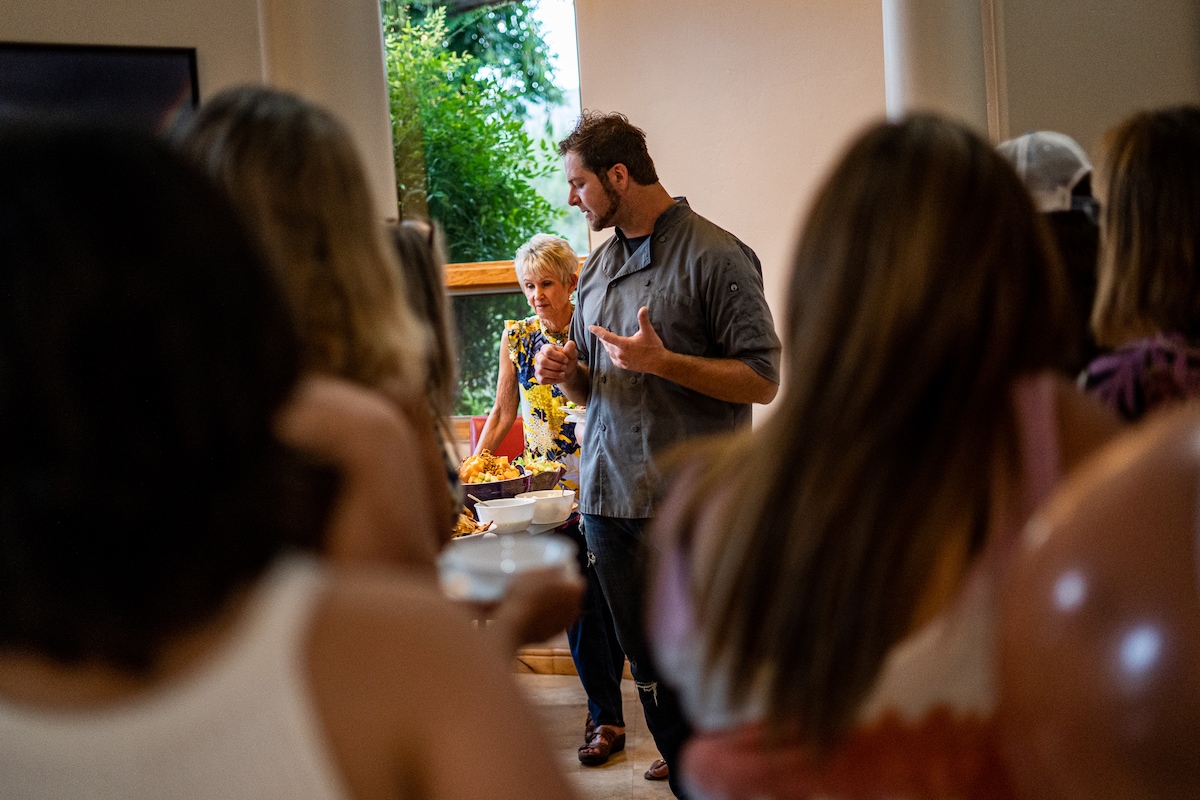 Šefo sezoniniai ir į Koloradą orientuoti kelių patiekalų, privačių šefo vakarienių patiekalai, įskaitant aukštos klasės kepsnių namus, bistro ir vėlyvų pusryčių įkvėptus meniu