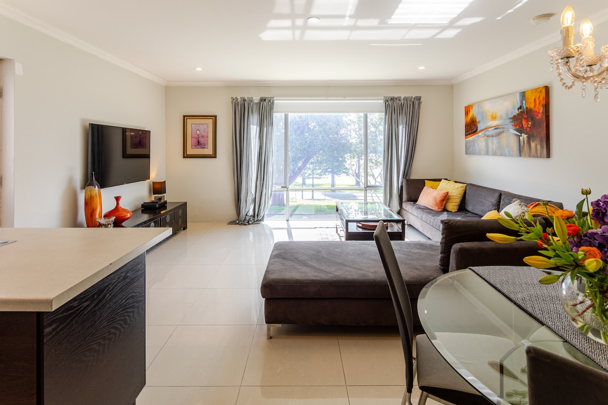 Vieta! Vieta! Vieta! Pasirūpinkite savo namais šiame naujame, viršutiniame aukšte, savarankiškame bute - viskas čia. Šiame bute, esančiame nuostabioje, lapuotoje Subiaco vietovėje, netoli Karaliaus Edvardo memorialinės ligoninės, yra pilnai įrengtas aircon, du karališki miegamieji, stilingas vonios kambarys, pilnai įrengta ir įrengta virtuvė, jūsų asmeninė skalbykla, svetainė su didžiuliu išmaniuoju televizoriumi, Wi-Fi, Echo Dot, darbo iš namų erdvės ir privatus balkonas su lapuotu vaizdu. Ko dar kas nors gali norėti?