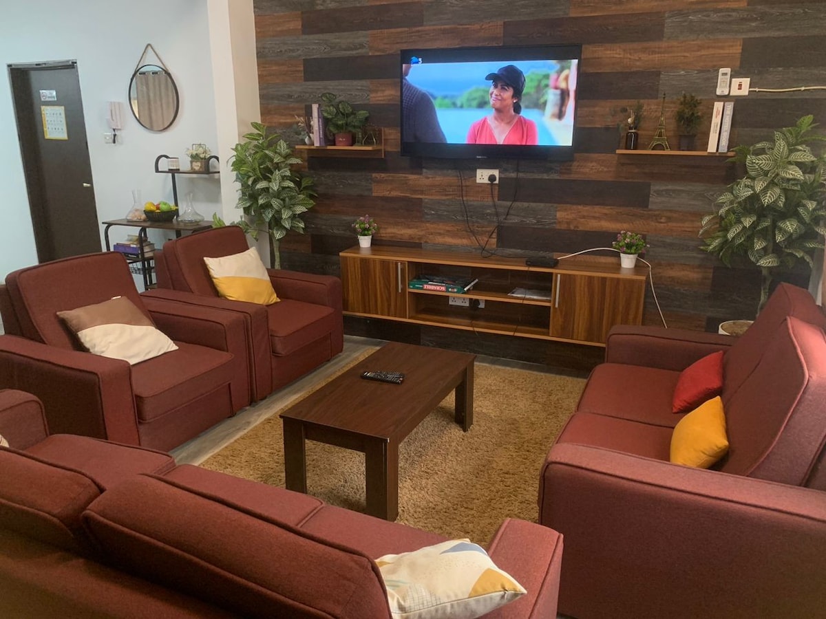- 3 miegamieji ir 2 vonios kambariai (1 privatus liukso numeris, 1 pagrindinis kambarys) - Svetainė su 55 colių išmaniuoju televizoriumi - Pilnai įrengta virtuvė (įskaitant skalbimo mašiną). - Karštas vanduo - valgomojo zona - Privatus įėjimas - kepsninė/kepimo ant grotelių zona - Didelės spartos Wi-Fi - Nemokama automobilių stovėjimo aikštelė (iki 3-4 automobilių) - Vaizdo stebėjimo kameros ir elektrinė tvora jūsų saugumui užtikrinti - Jei reikia, nemokama valymo paslauga. - Savarankiškas atvykimas su mūsų 24/7 prižiūrėtoju *ELEKTROS ENERGIJOS TIEKIMO NUTRŪKIMO GENERATORIUS Puikiai tinka šeimoms, turistams ir verslo keliautojams!