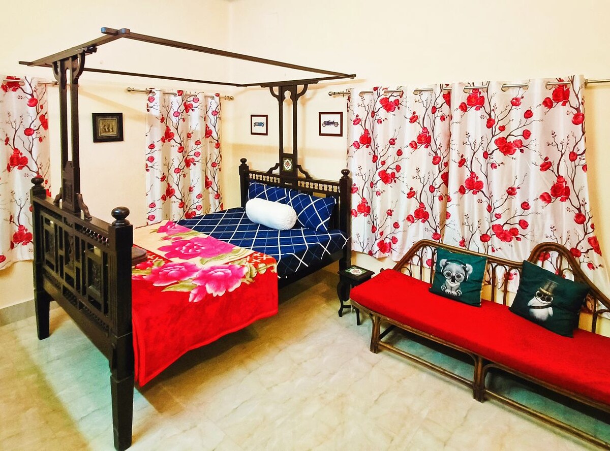 Sveiki atvykę į jaukią kaimišką ir elegantišką viešnagę! „Home92“ galite patirti „Yester yearss“ aukštų lubų erdvų miegamąjį su įmontuota virtuvėle ir pritvirtintu balkonu. Sanitariniai reikalavimai apima nepritaikytą atskirą vonios kambarį. Įsikūręs pirmame mano namų aukšte su atskiru įėjimu pačioje Sakčio širdyje, Jamshedpur. Keletas akcentų - vos už 2,5 min. kelio pėsčiomis iki pagrindinio Sakchi turgaus - Geras susisiekimas ir patogus susisiekimas viešuoju transportu. - Lengva pasiekti parduotuves, restoranus ir kt.