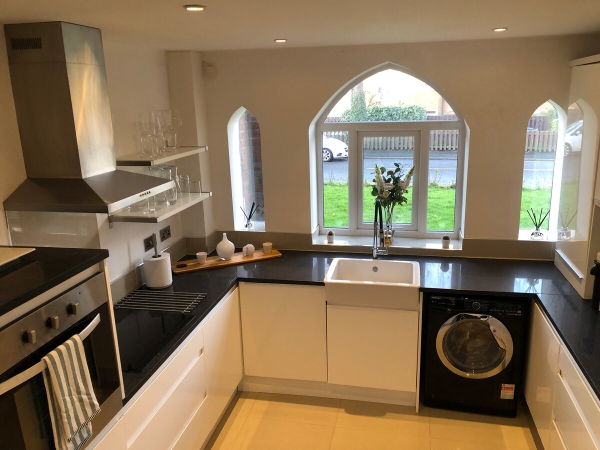 Fantastiškai įsikūręs Niukaslio lenktynių trasos pakraštyje. Šis naujai renovuotas, pilnai aptarnaujamas, nepriekaištingas būstas jūsų laukia. Būstą sudaro: - 2 dviviečiai miegamieji su įrengtomis spintomis - Vonios kambarys su vonios kambariu pirmame aukšte - Atskirkite nuo w/c iki pirmo aukšto - Visiškai integruota virtuvė (šaldytuvas-šaldiklis, skalbimo mašina ir pilnai įrengtas kavos baras). - Saugiai pastatykite automobilį ne gatvėje, o gatvėje yra daug automobilių. - Atskira sodo zona - Medijos siena su 60col. televizoriumi („Netflix“, „ITVX“ ir kt.) Negalima apsistoti su augintiniais.