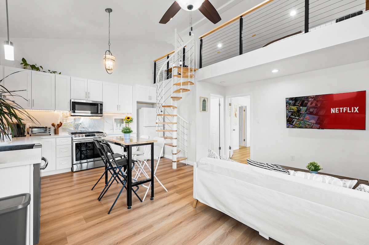 Visiškai įrengtas mikronamas, esantis pačioje istorinio San Dimo senamiesčio širdyje. Mūsų mikronamas yra vos už kelių minučių kelio pėsčiomis nuo miesto centro, kur rasite vietines kavines, antikvarines parduotuves, istorines vietas, restoranus ir muziejus. Šis mikronamas yra tiesiai už mūsų namų, pastatytų 1894 m. ir yra centre, vos už kelių mylių nuo visų aplinkinių universitetų , priekalnių, Fairplex ir maždaug už 30-45 minučių nuo Disneilendo ir daugumos SoCal lankytinų vietų. Susisiekite su nemokamu/savarankišku atvykimu.