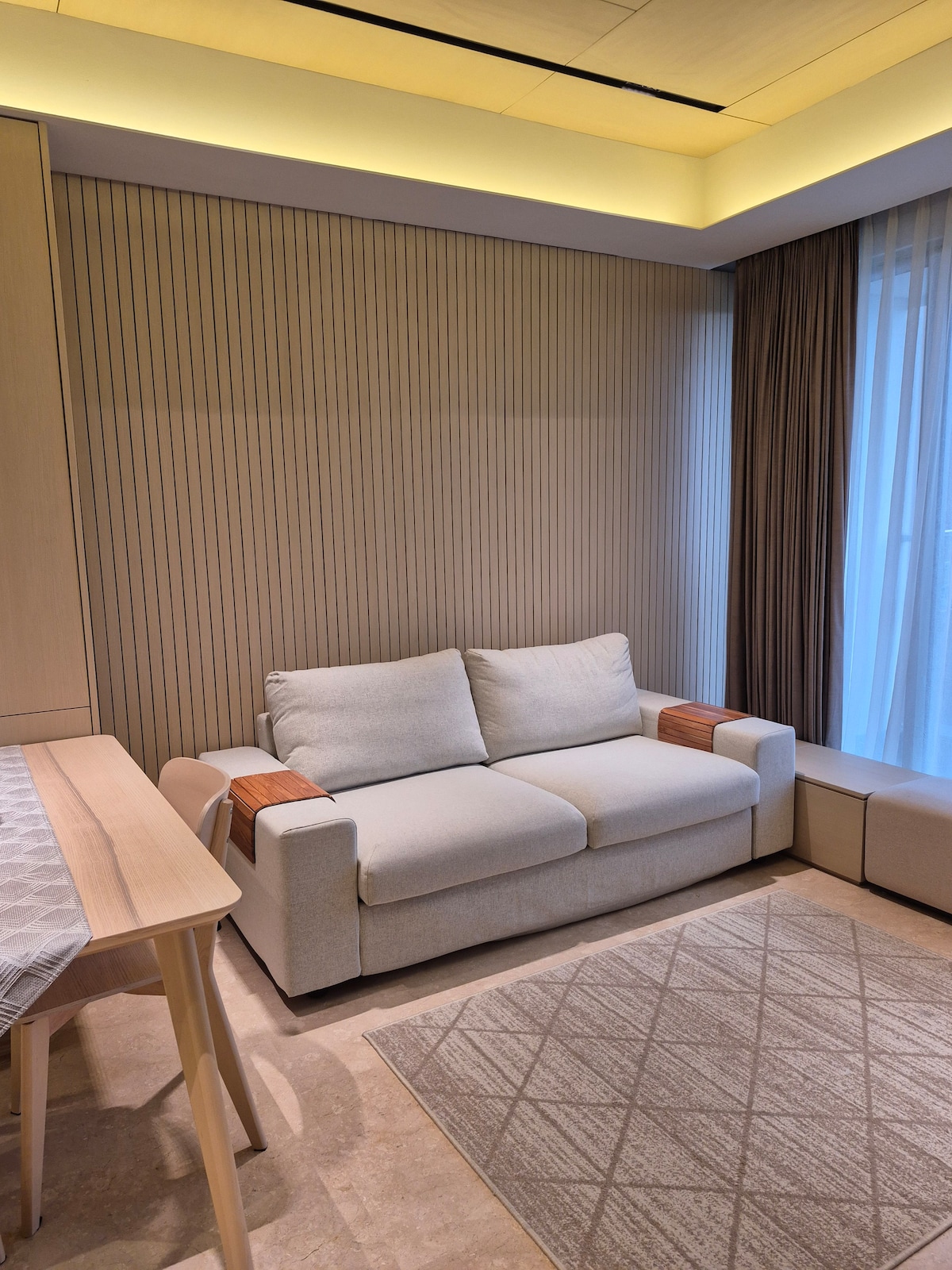 Pasitraukite į ramią oazę, kur švarios linijos, natūralios medžiagos ir harmoninga spalvų paletė sukuria ramybės jausmą. Šis apgalvotai suprojektuotas Airbnb yra paprastumo ir funkcionalumo uostas, siūlantis ramų pabėgimą nuo miesto šurmulio. Turėdami tiesioginę prieigą prie prekybos centro „Central Park Mall“, esate vos už kelių žingsnių nuo prekybos, valgymo ir pramogų pasaulio. Nesvarbu, ar esate nusiteikę apsipirkti, ar pasivaikščioti Džakartos akvariume, viskas yra prie jūsų durų.
