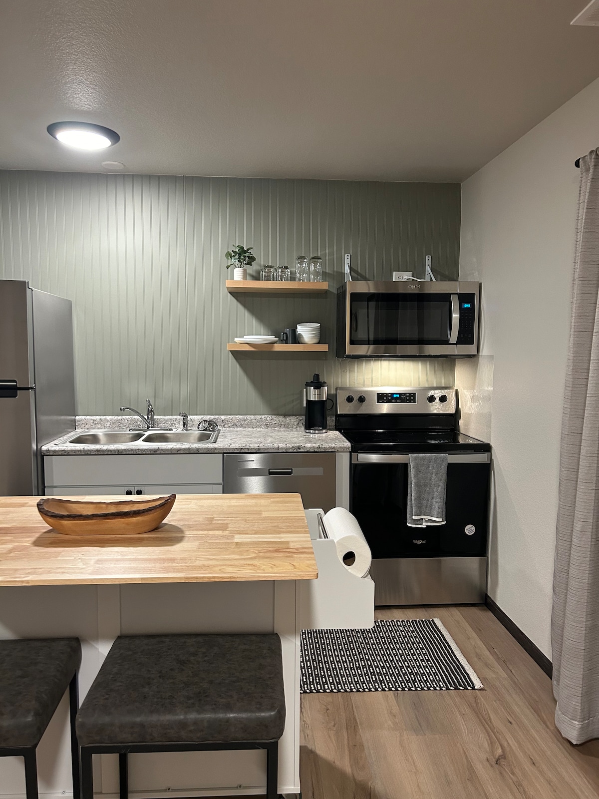 Tylus privatus miegamasis ir virtuvėlė izoliuoti nuo pagrindinio namo su bendro naudojimo saulės kambariu tarp. Kaimo vietovė nuo Hwy 44 vos už kelių minučių kelio nuo Rapid City oro uosto. Tesla 11kw paskirties įkrovimo lizdas jūsų garažo įlankoje, tiesiogiai pasiekiamas iš apartamentų. Starlink 150 Mbps internetas. Tinka augintiniams draugiškiems augintiniams su augintinių durimis iš apartamentų į aptvertą galinį kiemą ir terasą, izoliuotą nuo mūsų šuns ir katės. Privačioje vonioje yra grindų šildymas ir nesibaigiantis karštas vanduo su nuolatinio srauto vandens šildytuvu.