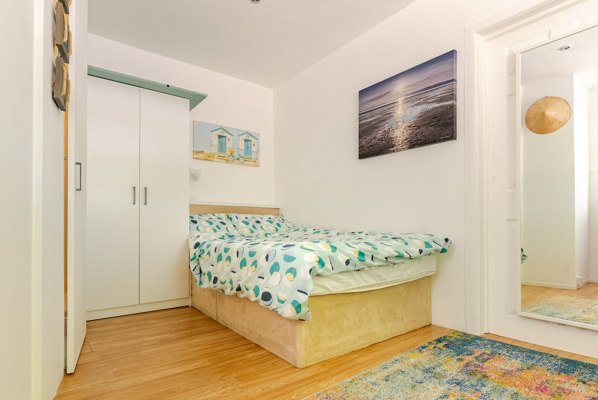 Tik vienam gyventojui. Mūsų siūlomas vonios kambarys yra švarus ir patogus su automobilių stovėjimo aikštele, lengva prieiga prie Bornmuto , paplūdimių ir Westbourne. Jūsų patogumui - privatus įėjimas. 15 min. pėsčiomis per pramogų sodus iki Bornmuto miesto ir paplūdimių. 10 min. pėsčiomis iki Westbourne. Autobusų maršrute Nr. 36 į Bornmutą, Talbot uni miestelį ir Kinsoną . Yra šaldytuvas, mikrobangų krosnelė ir virdulys Pagrindiniai indai ir stalo įrankiai. Atkreipkite dėmesį, kad nėra kitų maisto ruošimo įrenginių