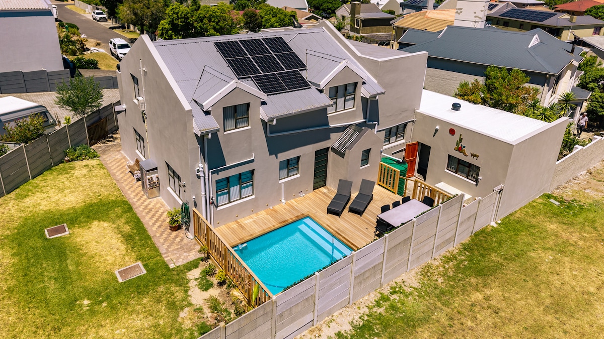 Masyvi erdvė, puikiai tinkanti šeimos susitikimams, komandos formavimui ar bažnyčios poilsiui. 2 atskiros gyvenamosios erdvės, kiekvienas su 3 miegamaisiais, 2 vonios kambariai, 22 žmonės daugiausia dviaukštėje lovoje. Didelė virtuvė/kavinė ir 2 poilsio kambariai. Turėsite prieigą prie pagrindinio namo su dideliu židiniu ir darbo poilsio sale, masyviu valgomuoju, televizoriumi, balkonu su vaizdu, didelio baseino ir braai zonos, stalo teniso stalo, baseino stalo ir 32 vietų teatro! Priimkite svečius vietoje. Nėra televizorių apartamentuose, bet šviesolaidinis Wi-Fi srautiniam perdavimui. Nerūkyti🚭