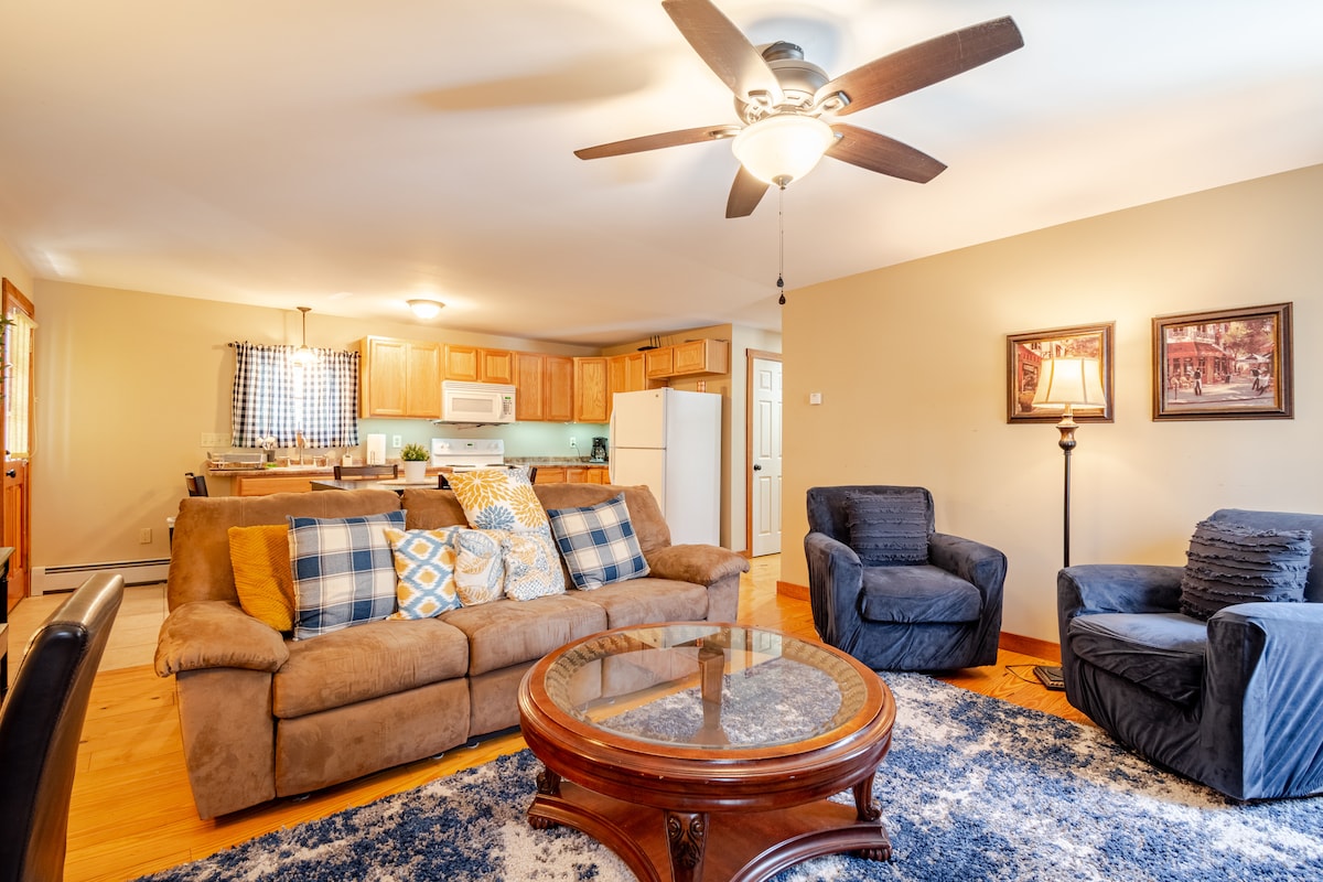 Prabangūs ir saulėti apartamentai su privačia vonia, atskiru įėjimu, televizoriumi/svetaine, skaitymo kampeliu, rašomuoju stalu/darbo zona ir kavos baru. 6 kvartalai iki miesto ir gražiais vaizdais į Skinner Mt. Papuoštas rankų darbo mediniais baldais vienas iš garsiausių Nortamptono baldų. Privatus kiemas, didelis kiemas su pasirinktomis avietėmis ir mėlynėmis. Apartamentuose yra privati vieta pastatyti automobilį, jis patogioje vietoje, netoli dviračių tako ir 91 maršruto. Atsipalaiduokite ir tyrinėkite Nortamptoną.