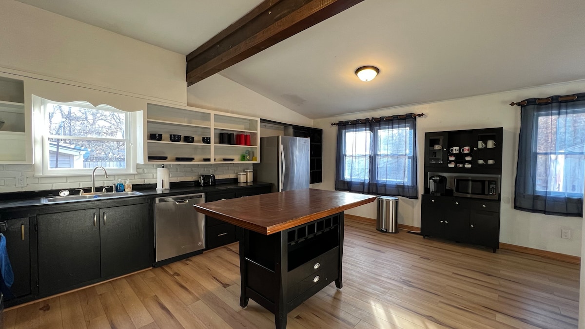 Apsistokite Kechi istorijoje! Šis kotedžas kažkada buvo antikvarinė parduotuvė, kai Kechi buvo vadinama Kanzaso antikine sostine. 2000-ųjų pradžioje jis buvo renovuotas kaip žavingas 2 lovų 1 vonios namas. Įsikūręs ramiame rajone, pakankamai toli nuo miesto. Ateikite susipažinti su gyvenimu mažame mieste ir atraskite viską, ką gali pasiūlyti Kechi. Šiame unikaliame potyryje jūsų laukia ramūs rytai ir smagios popietės. Pilnai įrengta virtuvė, erdvūs kambariai, jaukus priekinis ir galinis prieangis, šeimos žaidimai ir kavos baras!