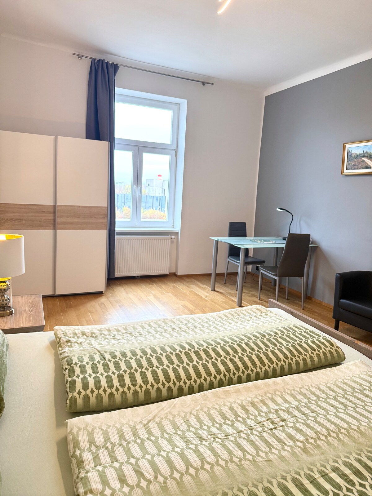 Mėgaukitės prabangiu komfortu šiame elegantiškame 100 m² butikiniame bute – vos už 12 min. kelio iki Stephansplatz. Gyvybingoje vietovėje su puikiomis kavinėmis ir prekybos centrais Puikus viešasis transportas: metro U3 ir oro uosto linijos S7/CAT netoliese. Bute yra: • 4 stilingus miegamuosius • lanksčios lovos: 4 karališko dydžio arba 8 viengulės su ortopediniais čiužiniais – karališkos lovos sujungtos be tarpų - puikus komfortas. • 3 vonios kambariai (2 apartamentai) • pilnai įrengta virtuvė su indaplove/skalbimo mašina • saulėtą terasą