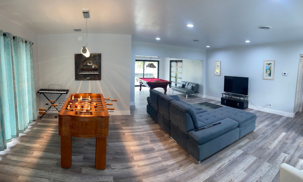Sveiki atvykę į savo prabangius „Infinity“ baseino namus prie vandens iki 8 suaugusiųjų ir vaikų, įskaitant 2 baidares! Ši pakrantės oazė, esanti vos už kelių minučių kelio nuo nepriekaištingų paplūdimių, pasaulinio lygio valgymo ir energingo naktinio gyvenimo, suteikia lengvą prieigą prie geriausių, ką gali pasiūlyti Florida. Nesvarbu, ieškote nuotykių ar atsipalaidavimo, viską rasite čia. Patirkite pakrantės magiją gyvenant šiuose prabangiuose namuose su begalybės baseinu ant ramaus vandens kanalo. Jūsų svajonių atostogos laukia!