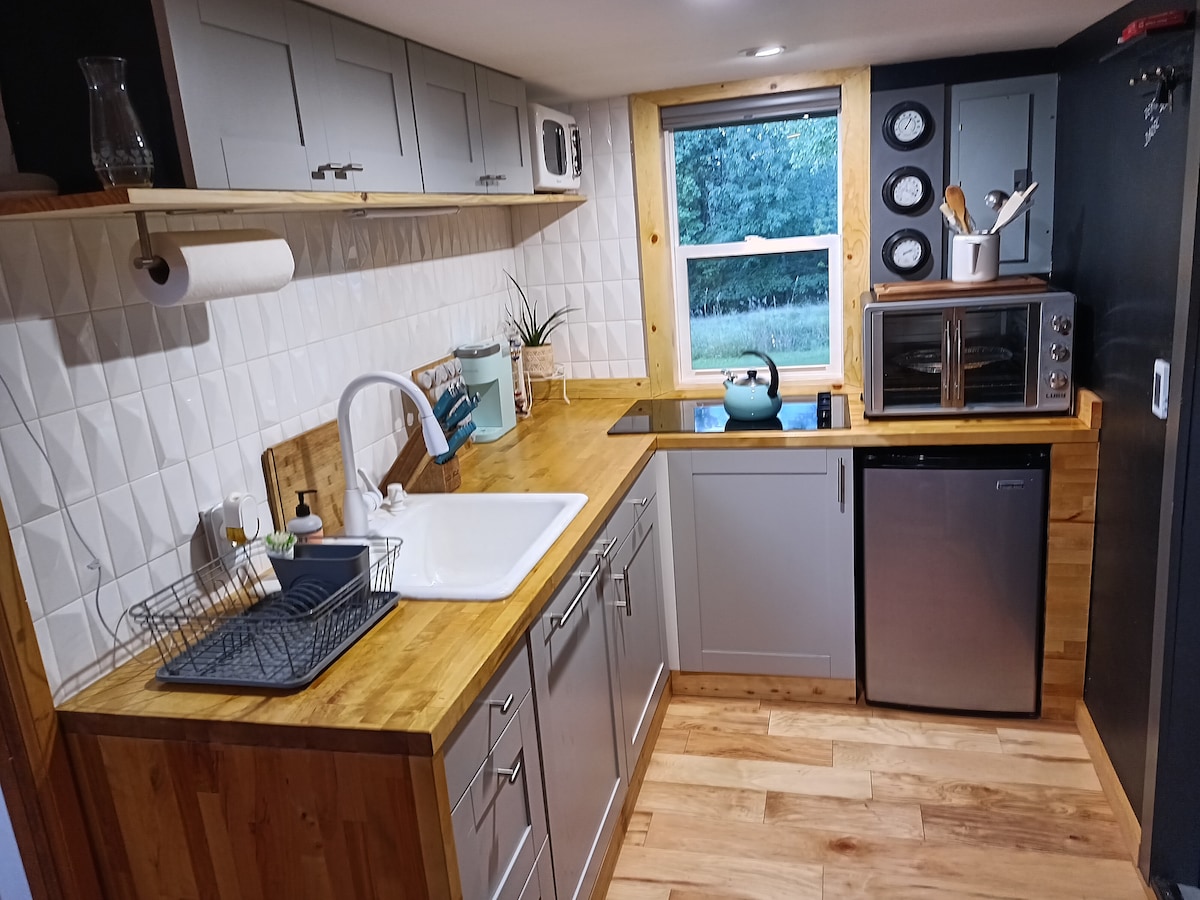 Augintiniams tinkamas 2 miegamųjų kotedžas Katskilio kalnų vietovėje. Virtuvėje su atnaujintais prietaisais 2023 m. viduryje yra elektrinė viryklė ir naujas šaldytuvas. Dujinė kepsninė taip pat yra terasoje. Svetainėje yra židinys, TV, Wi-Fi ir nedidelė valgomojo zona, kurioje gali apsistoti 4 žmonės. Lauke yra didelis kiemas su vejos kėdėmis, hamaku ir laužaviete. Yra būtiniausi vonios kambario reikmenys. Svečias turi atsinešti malkų židiniui. Atvykimo ir išvykimo laikas lankstus.