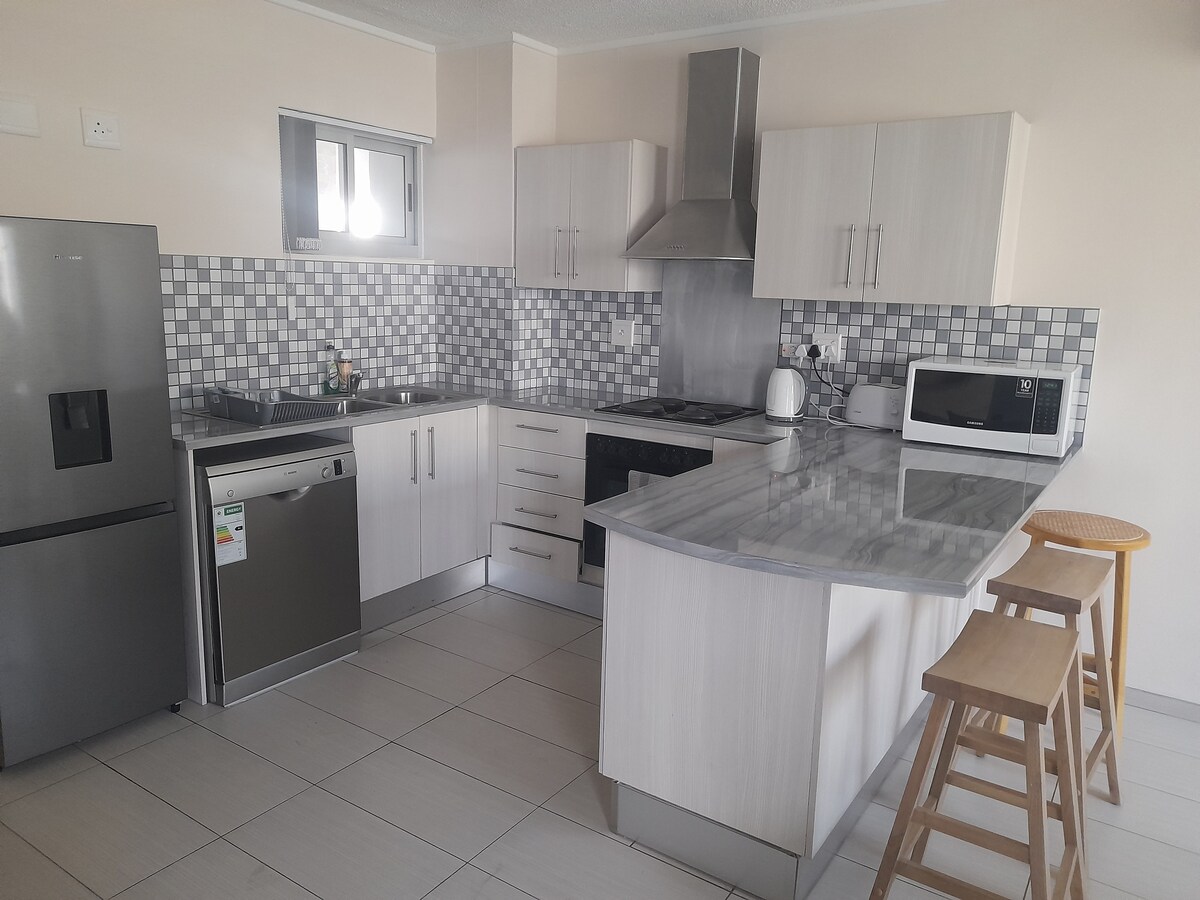 Welcome to our peaceful garden cottage. Located in a safe and secure neighborhood, our home is just a short walk away from local shops, restaurants, pubs and a filling station. You will find a fully equipped kitchen, cosy living area, as well as indoor and outdoor dining options. Step outside to enjoy a traditional Namibian braai, and spend your evenings around our cosy fire pit. Our Airbnb offers the perfect blend of privacy, security, and family-friendly amenities to make your visit enjoyable.