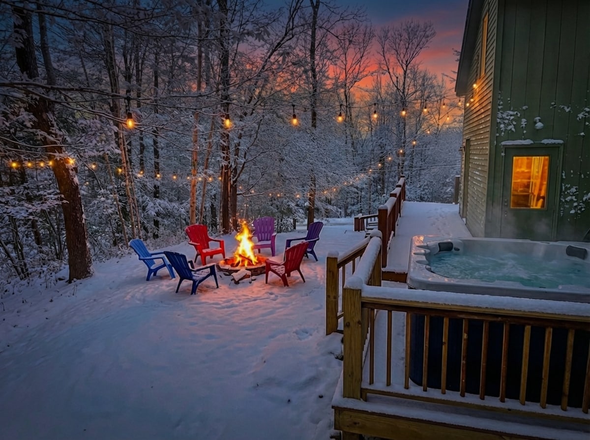 Privatus Brook poilsio namelis: sūkurinė vonia - laužavietė - slidinėjimas