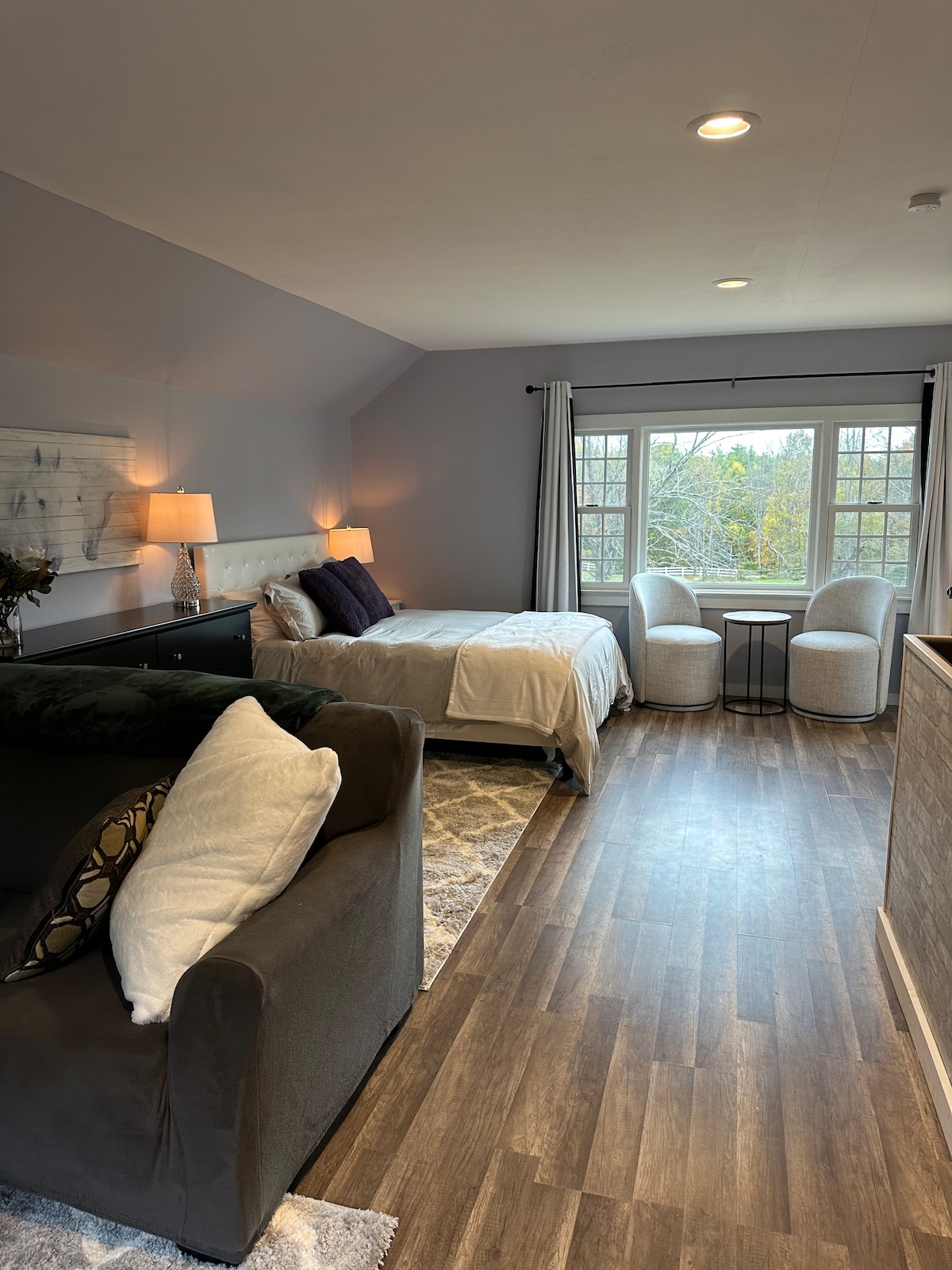 Pabuskite iki saulės pabučiuotų vynuogių eilių ir atsipalaiduokite ramioje, vynuogynų apžvalgoje. Šiame atviros koncepcijos apartamentuose yra pliušinė karališko dydžio lova, gausi natūrali šviesa ir kviečiantis modernus dekoras. Gurkšnokite vyną saulėlydžio metu, gaminkite maistą gerai įrengtoje virtuvėje arba atsipalaiduokite mūsų naujoje „bendroje“ sūkurinėje vonioje. Nors būste yra ir kitų svečių, ši erdvė bus skirta tik jums. ~ 5 min. iki Vinipesukio ežero, 20 min. iki Volfeboro, 20 min. iki Ganstoko ir 25 min. iki Banko paviljono