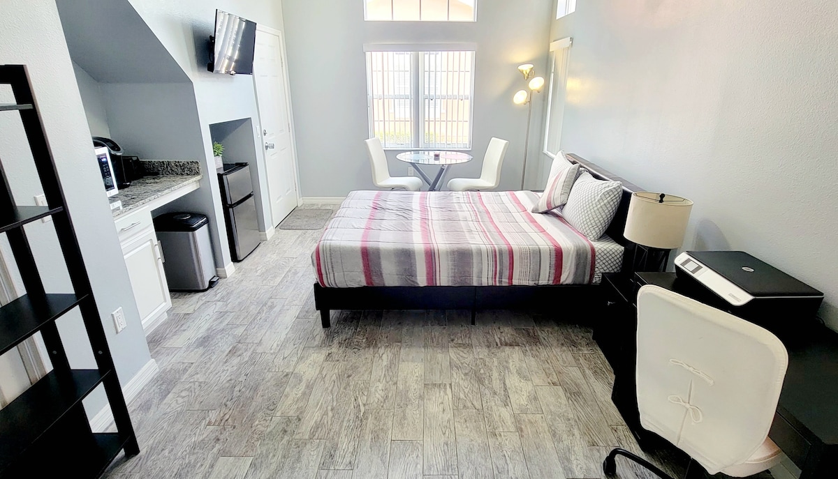 „Studija“ - tai jūsų ramaus poilsio žingsniai nuo jūsų putojančio privataus baseino! Būsite įsikūrę elegantiškame ramaus rajono akligatvyje - tai puikus būdas atsipalaiduoti nuo ilgų, įtemptų dienų pramogų parkuose. 20 min. kelio nuo Disney World 27 minutės nuo „Universal“ 25 minutės nuo „Sea World“ Jei keliaujate su draugais ir (arba) šeima, šalia yra ir kita studija! airbnb.com/h/thousandoakspeacefulstudio Tai saugi erdvė. Nėra už ką!