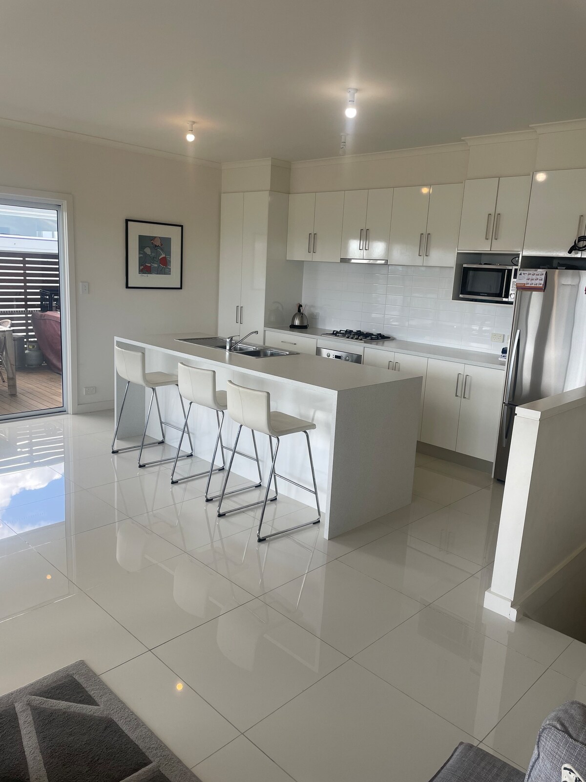 Pilnai įrengtas, modernus 3 miegamųjų, 2 vonios kambarių namas, paruoštas įeiti į vidų ir jaustis kaip namie. Puikiai tinka visiems jūsų apgyvendinimo poreikiams darbui ar laisvalaikiui. Kiemas įeina į didelių memorialinių parkų kraštą su žaidimų aikštele, kepsnine , patogumais ir pėsčiųjų takais.