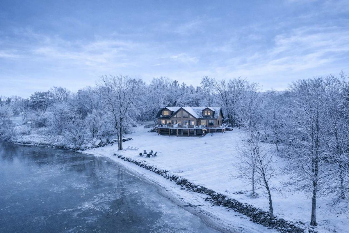 ●Keletas naujų naujausių papildymų ● *Prabangi sūkurinė vonia* ~~~~~3 terasos šildytuvai~~~~~~ ◇Pilnai įrengta lauko virtuvė◇ *Dvi picerijos 9 įvairūs sniego rogės Trobelėje yra žaidimų stalai, baras, pusryčių baras, virtuvė su visais patogumais, 5 televizoriai (įskaitant 75colių didelį ekraną). *Yra didelis denis *Dengtas paviljonas *Medinė ugniagesių duobė * Du terasos šildytuvai . Tiekiama daug malkų ir suskystintų dujų. Mėgaukitės gamta net ir tada, kai šiek tiek šalta. Prieiga prie Čipevos upės...