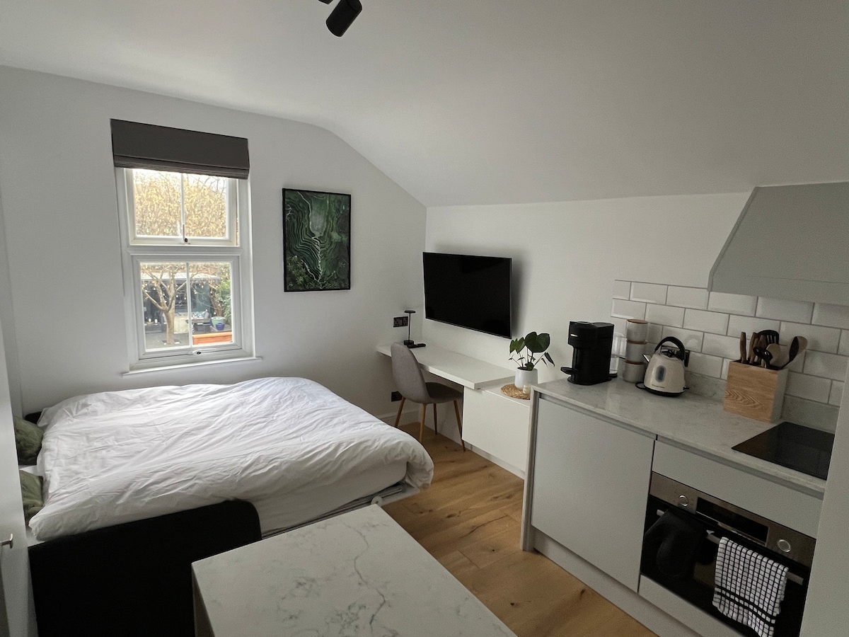 This self-contained studio apartment is newly renovated to a high standard and interior designed to provide compact accommodation in a beautiful residential area of North Oxford. It's clean and bright with comfortable furnishings, in an ideal location, close to buses, supermarkets, cafes and just a couple of miles from Oxford City centre. There is one small parking space on the property – please advise if required. Please respect that this is a NO SMOKING property!