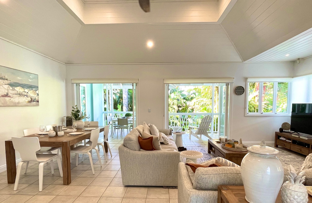 Absolute beachfront property on the world famous Four Mile Beach, Port Douglas. Stunning two bedroom beachfront cottage. A truly unique experience. Sit and view the world pass by on Four Mile Beach from your front deck. Watch the kitesurfing and standup paddle boarding from your living room. Step from your veranda onto the sand. Full kitchen with oven, stove, microwave. Unlimited hi-speed wifi. Netflix. Stunning 55 inch Samsung Frame TV. You will love your stay here.