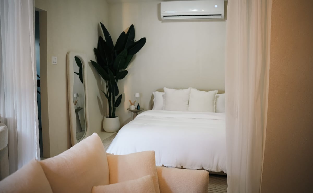Naujas jaukus aukštųjų technologijų modernus vienaaukštis namas su virtuve, vonios kambariu, erdviu miegamuoju, atskira sujungta biuro erdve, televizoriaus kambariu ir poilsio erdve su oro kondicionieriumi ir dengta terasa, tinkama viengulei arba porai - karališka lova ir kasdienis kambarių aptarnavimas darbo dienomis, jei prašoma. Netoli vakarinės pakrantės su vaizdu