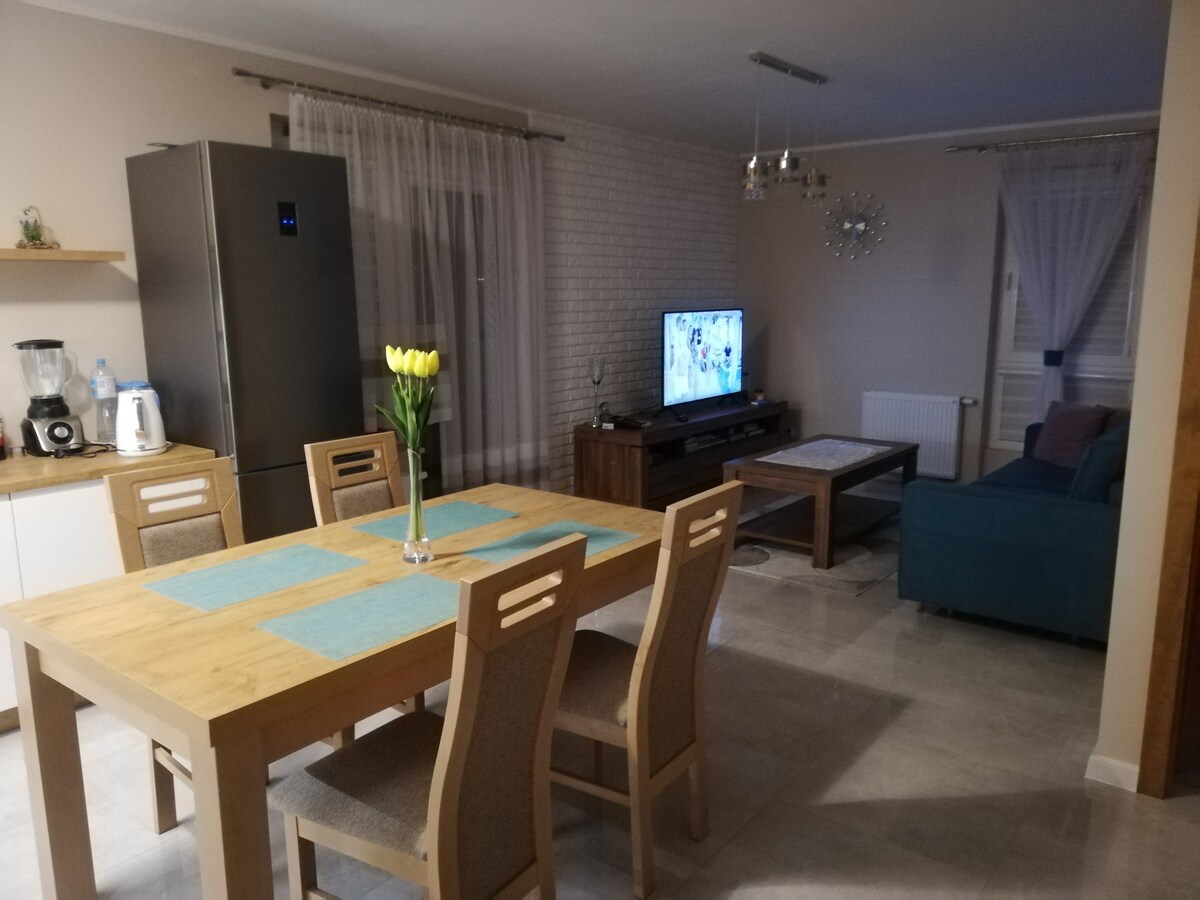 Butas porai, grupei ar šeimai moderniame gyvenamajame rajone: ✔ Du miegamieji ✔ Sulankstoma dvigulė sofa svetainėje (miego plotis 140 cm) ✔ Pilnai įrengta virtuvė - indaplovė, indukcinė kaitlentė, orkaitė, šaldytuvas, mikrobangų krosnelė ✔ Televizorius, belaidis internetas ✔ Gyvenvietė stebima išorinėmis kameromis ir apsauga, užtikrinančia saugumą Lauko žaidimų aikštelės ir mini sporto salės.