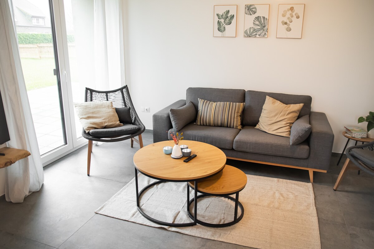 Gražus šviesus butas yra apsuptas laukų Bislich pakraštyje. Visiškai renovuotas 2018 m. pabaigoje, butas turi grindų šildymą ir pilnai įrengtą naują virtuvę su indaplove ir naują vonios kambarį. Miegamuosiuose įrengtos laminuotos grindys, visos kitos gyvenamosios patalpos su didelėmis plytelėmis. Baldai parenkami su meile detalėms ir skleidžia šiltą atmosferą. Taip pat galima įrengti privačią terasą (su kepsnine).