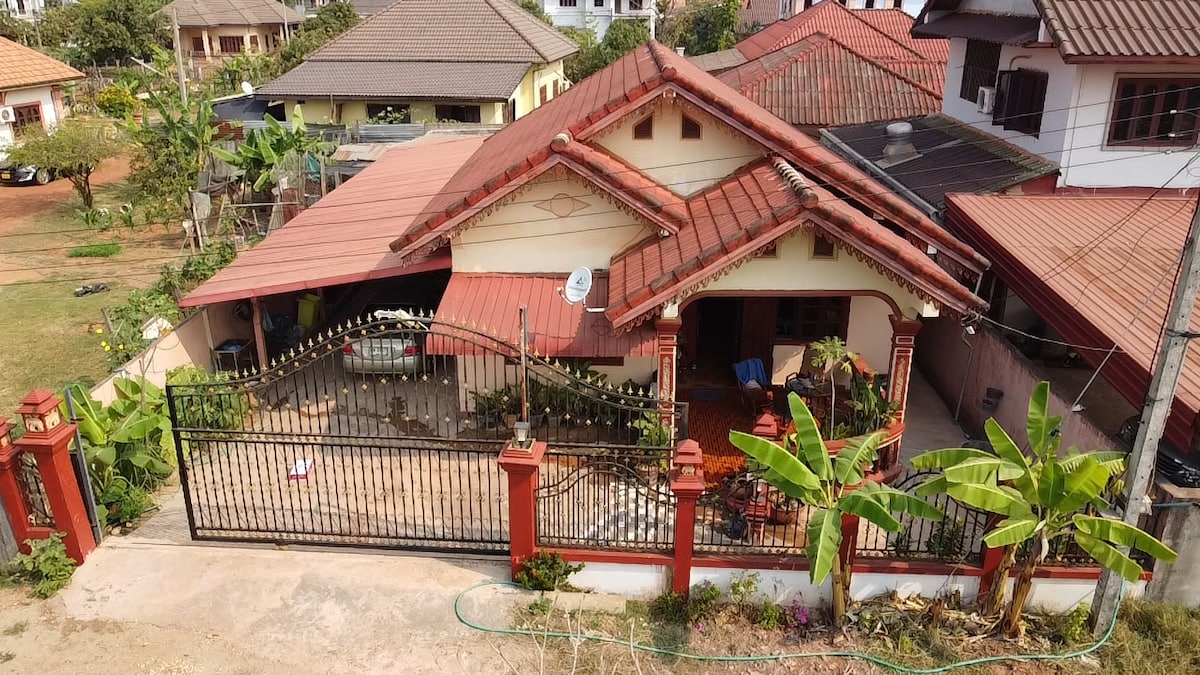 Laoso stiliaus stilingas namelis su moderniais patogumais. Trys miegamieji ir 1 vonios kambarys bei 1 atskiras tualetas. Su šeimininku dalijamasi lauko virtuve ir baseinu. Būstas yra netoli netoliese esančio šviežio turgaus, kuriame svečiai gali apsipirkti šviežio vietinio maisto arba pavalgyti Laoso vietiniuose maisto restoranuose. Būstas yra už 8,5 km nuo miesto centro gyvenamajame priemiestyje. Svečių kelionės į miesto centrą vyksta per krušos važiavimo programėles.
