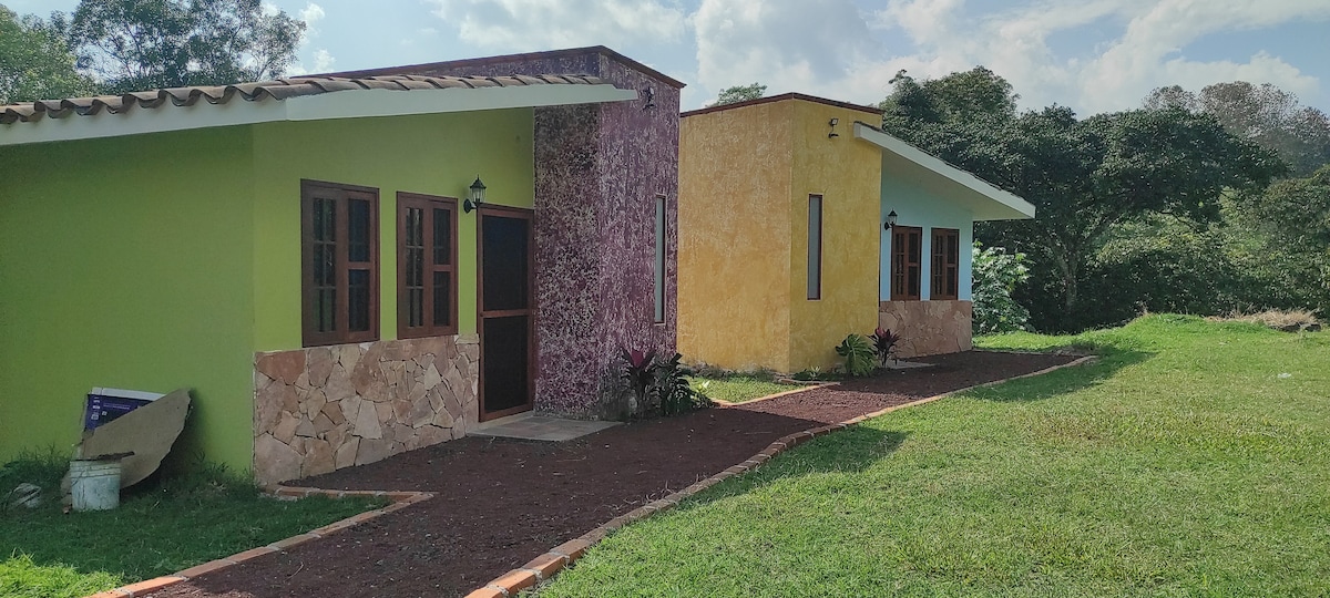 Vienaaukščiai vasarnamiai, panirę į finca cafetalera y bosque