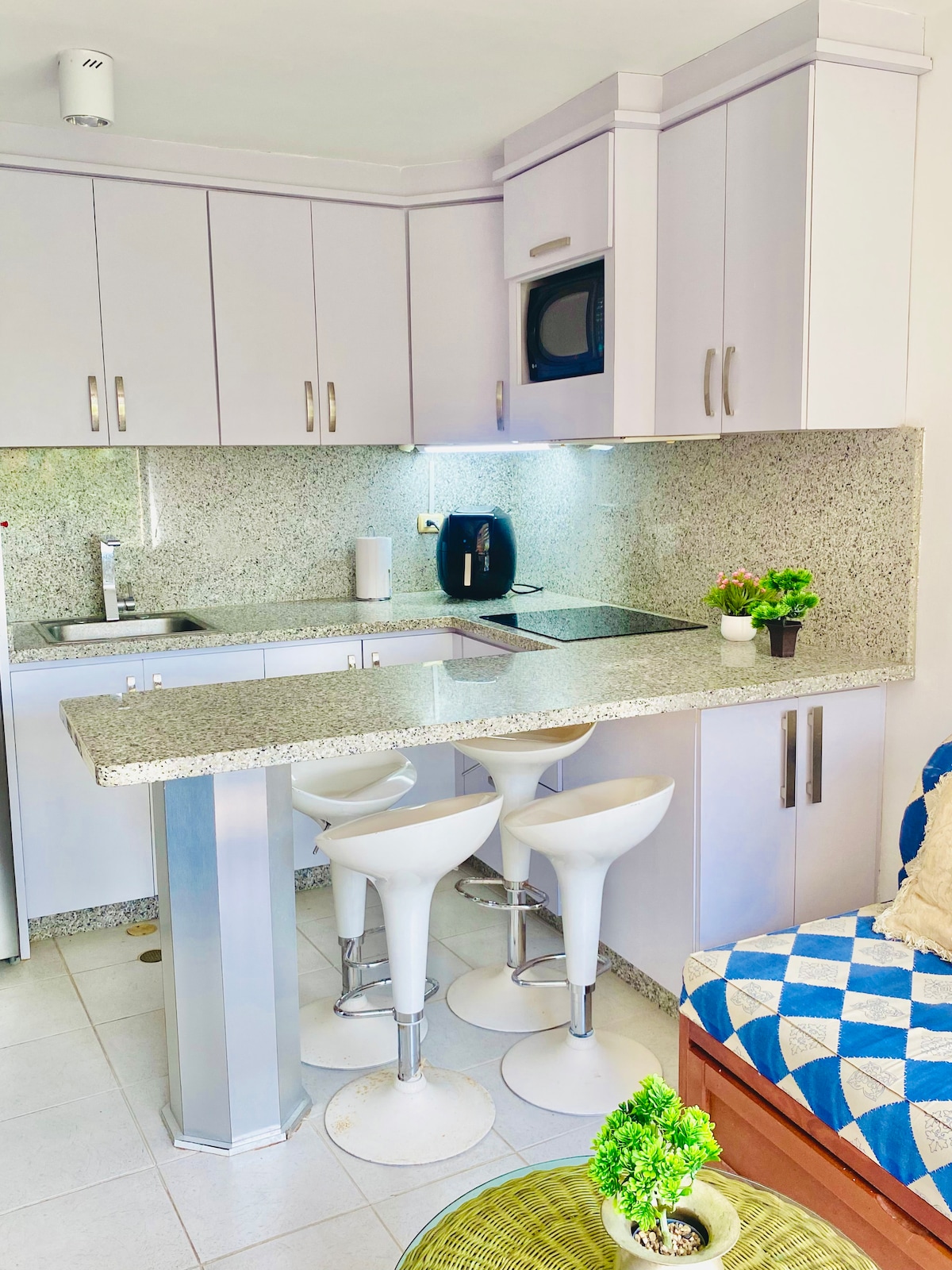 Sveiki atvykę į „Ancorage Club Block“ – vietą, kurios nusipelnėte Tukakase. Vos už 10 minučių kelio nuo miesto centro, prekybos centro, kazino ir išvykų laivu į Kyz, su tiesioginiu išėjimu į privatų paplūdimį. Sukurta iki 4 asmenų: 1 dvigulės lovos miegamasis + sofa-lova + ištraukiama lova, 1 vonios kambarys, įrengta virtuvė, televizorius (YouTube-Netflix), mikrobangų krosnelė, oro kondicionierius, greitas WiFi ir dengta automobilių stovėjimo aikštelė. Apsauga visą parą ir baseinas su čiuožyklomis. Bute yra rankšluosčiai, patalynė ir vidinis vandens bakas.