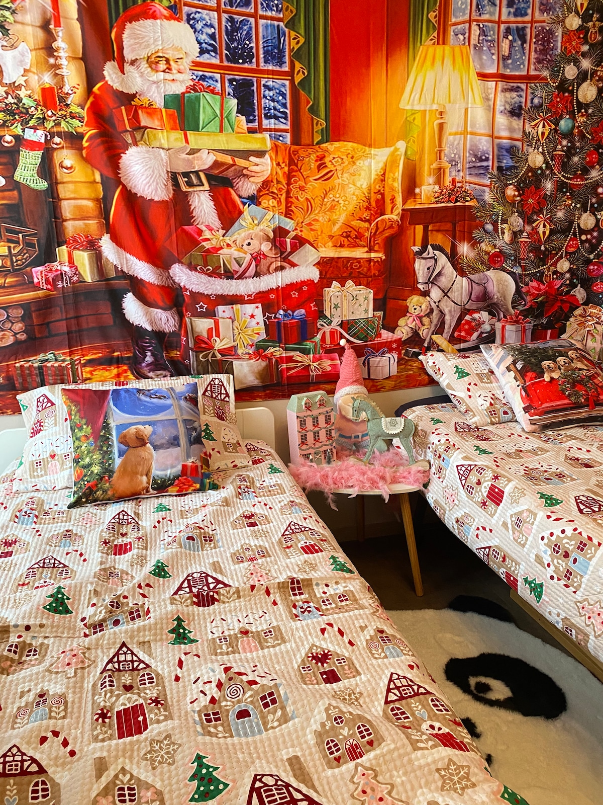 Maison de plain pied donnant sur deux jardins. Celui au Sud est privatif. Le très grand au nord est partagé avec nous... quand on a les petits enfants. Chaque chambre dispose d'une salle de bain et de WC. Un lieu cosy pour savourer le calme au coin du poèle en hiver. Confortablement équipée pour la cuisine. Les enfants adoreront les ânes, le portique et le trampoline du jardin.