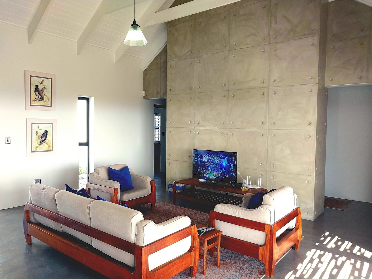 Weskus-Beskus yra neseniai įrengtas 2 miegamųjų, šunims tinkamas namas paplūdimyje. Tikslas suprojektuotas šiuolaikiniu Vakarų pakrantės stiliumi. Iš visų kambarių atsiveria vaizdas į vandenyną. Miegamieji su apartamentais, kokybiškos lovos ir egiptietiška medvilnė laukia jūsų. Viduje ir už jos ribų, o trečiasis - žvaigždėtas dangus Boma Braai. Didelė veranda. Patogus, modernus, netvarkingas interjeras. Stulbinantys saulėlydžiai. Miles saugus, smėlio paplūdimys. Atsivežkite savo šunį! 165 km nuo Keiptauno, 13 km nuo Velddrif. Visi laukiami.
