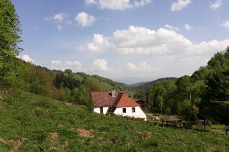 Jaukus kotedžas Kłodzko slėnio širdyje, sukurtas norintiems atsipalaiduoti ir užmegzti ryšį su gamta. Patogiai miega 8 žmonės, yra du miegamieji, erdvi svetainė su sofa-lova, pilnai įrengta virtuvė ir du vonios kambariai. Privati malkomis kūrenama sūkurinė vonia ir kepsnių zona garantuoja nepamirštamą kelionę. Ideali vieta tyrinėti kalnų takus ir lankytinas vietas. Čia baigiasi kelias ir prasideda tikras atsipalaidavimas.