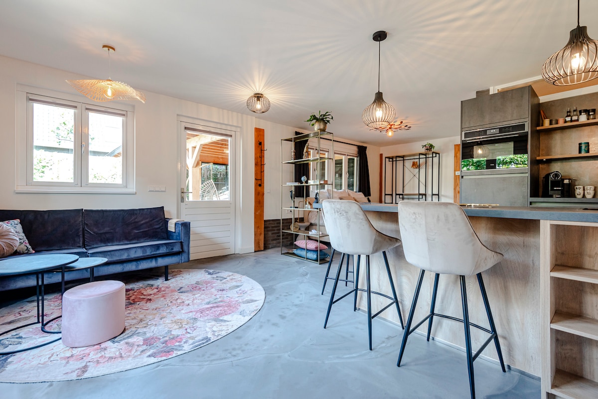 Jaukus mūsų kotedžas yra 50 kvadratinių metrų ( bendras plotas). Prancūziškos durys į uždarą sodą pietinėje pusėje 5x7 L formos kambarys su atvira virtuve ( virtuvėle) Yra: Šaldytuvas su šaldikliu. Indaplovė. Virdulys. Orkaitė. Oro džiovintuvas. 2 žiedų indukcinė kaitlentė. Nespresso kavos aparatas. Malonios lovos ir malonus (lietaus) dušas kriauklė su stalčiais daiktams laikyti. DĖMESIO! Viršutiniame aukšte / miegamojoje zonoje nėra laiptų tvoros, todėl rekomenduojame neleisti čia apsistoti mažiems vaikams.