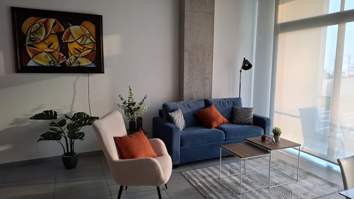 Naujas, jaukus ir modernus butas centrinėje sostinės dalyje su žalsvai melsvomis detalėmis. Iš jo atsiveria gražus vaizdas į miestą ir unikalus balkonas. Butas yra 8 aukšte. Jis yra labai gerai įrengtas su viskuo, ko reikia maloniai viešnagei. Greitas Wi-Fi, išmanusis televizorius, karštas vanduo, oro kondicionierius, virtuvė su viskuo, ko jums reikia. Baseinas, sporto salė, stogas ir dar daugiau. Labai gerai įsikūręs, mažiau nei 5 minutės kelio nuo didžiausių prekybos centrų, restoranų ir barų. Saugi ir išskirtinė erdvė