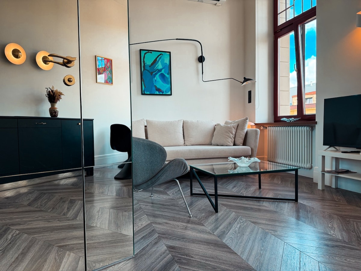 Stilingas loftas gražiame, restauruotame nuomojamame name pačiame Lodzės miesto centre, Manufakturoje ( atstumas - 150 m arba 2 min. pėsčiomis) ir labai arti garsiausios Piotrkowska gatvės. Visame būste ir kiekviename aukšte yra stebėjimo kamera. Parkas, teatras , muziejus, prekybos centras, restoranai , aliniai, barai, aliniai - viskas labai arti.