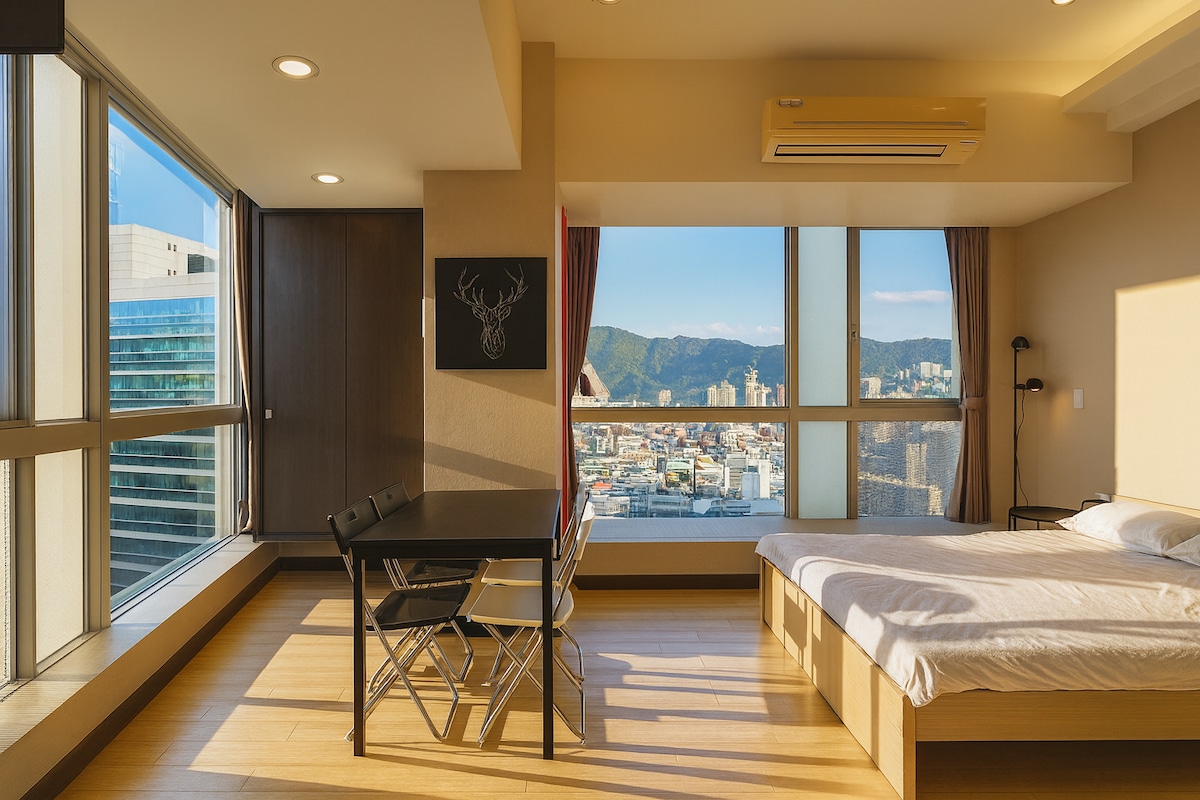 ★ Pagrindinė vieta: 30 sek. pėsčiomis nuo Taipėjaus pagrindinės stoties išėjimo iš M7 ★ Įspūdingas 101 vaizdas: mėgaukitės saulės šviesa ir Taipėjaus 101 nakties vaizdu iš sofos ★ Aukščiausios kokybės funkcijos: 100col. projektorius, patogi sofa, skalbyklė-džiovyklė ⚠️ Ramybės valandos po 22 VAL. — sumažinkite triukšmą, kad gerbtumėte kaimynus. Užsisakykite tik tuo atveju, jei galite laikytis šios taisyklės. Lovos: 2 dvigulės lovos, galima pridėti 1 sofą-lovą Pėsčiomis: 5 min. iki Taipėjaus Maino / 10 min. iki MRT oro uosto MRT: 1 stotelė iki Ximen ir Zhongshan, 3 stotelės iki Dongmeno ir Rytų rajono
