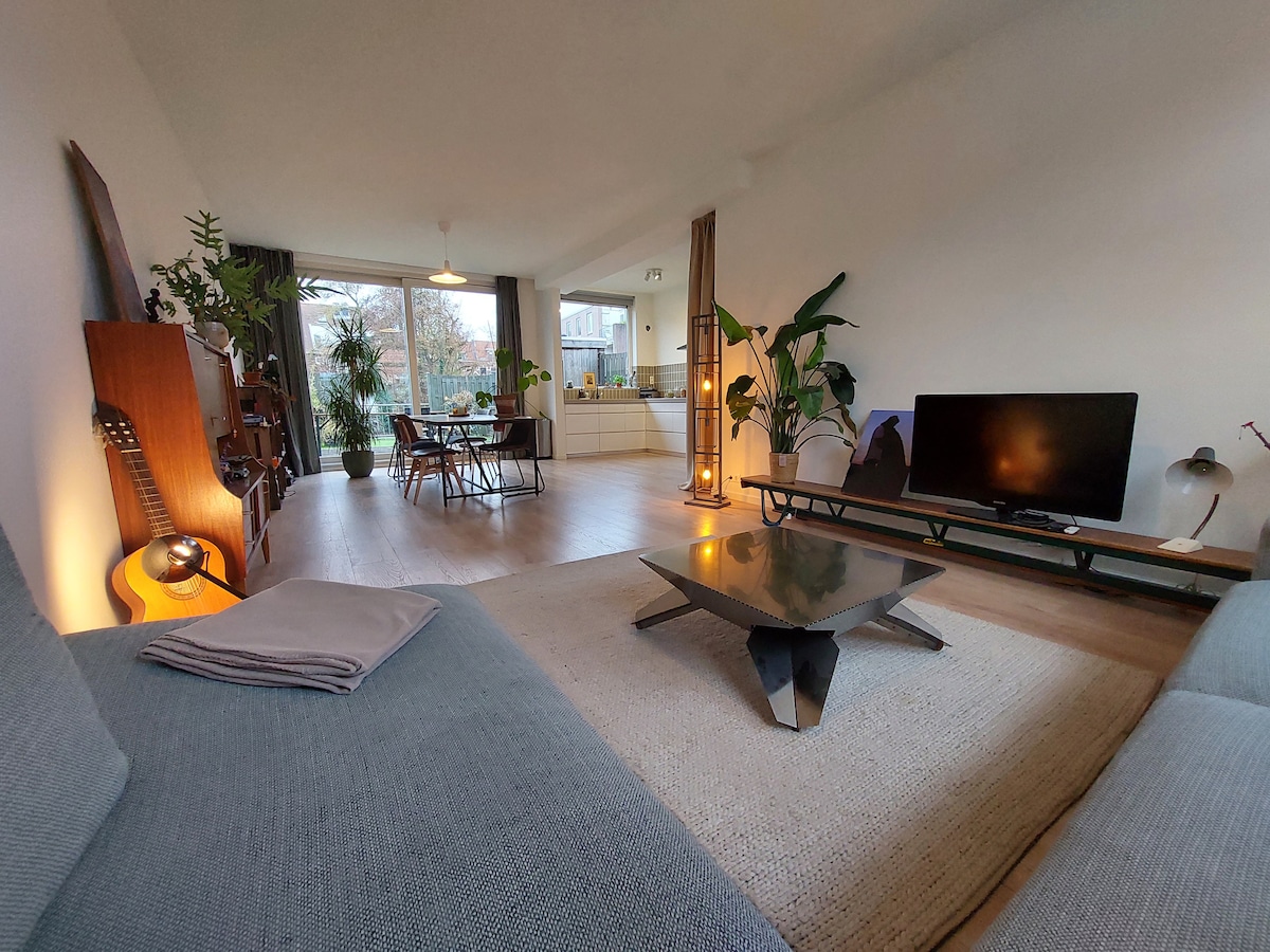 Mūsų nakvynės su pusryčiais vietoje yra visi modernūs patogumai, pvz., moderni virtuvė, „Philips“ atspalvių apšvietimas, išmanusis televizorius ir „Quooker“. Jaukioje verandoje yra prabangi sūkurinė vonia ir malkomis kūrenama viryklė. B&B su dideliu privačiu sodu ir netrukdomais vaizdais yra visiškai apsaugota nuo sodybos tvora ir prieinama tik jums kaip svečiui. Iš gretimoje terasoje esančios suomiškos statinės pirties galite pažvelgti į vaizdingas miesto pievas. Skanūs pusryčiai pagal jūsų skonį yra neprivalomi.